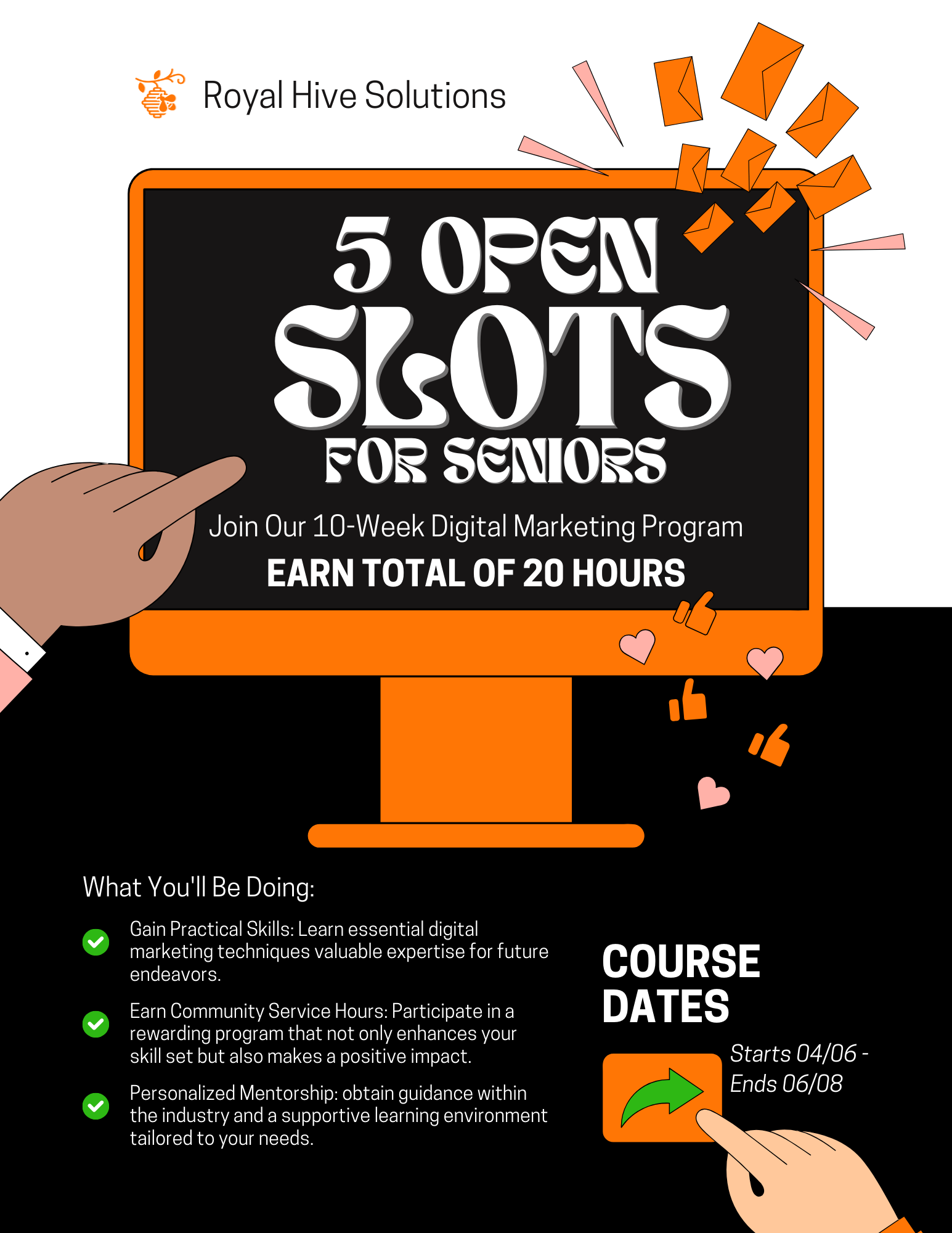 In an increasingly digital world, equipping high school seniors with essential skills in digital marketing is paramount. Moreover Royal Hive Solutions would like to provide these students community service credits beneficial on any resume or college application.
